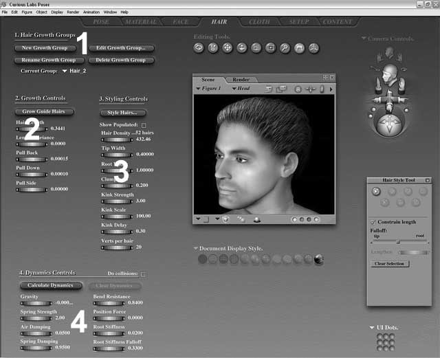 - Styling Controls: The Styling Controls (3) allow you to control the appearance of hair.